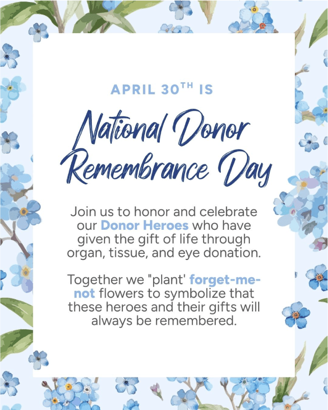 April 30th is National Donor Remembrance Day. 💚 A day to pause and honor the donors who gave the gift of life and the families who made that decision in a moment of unimaginable loss.